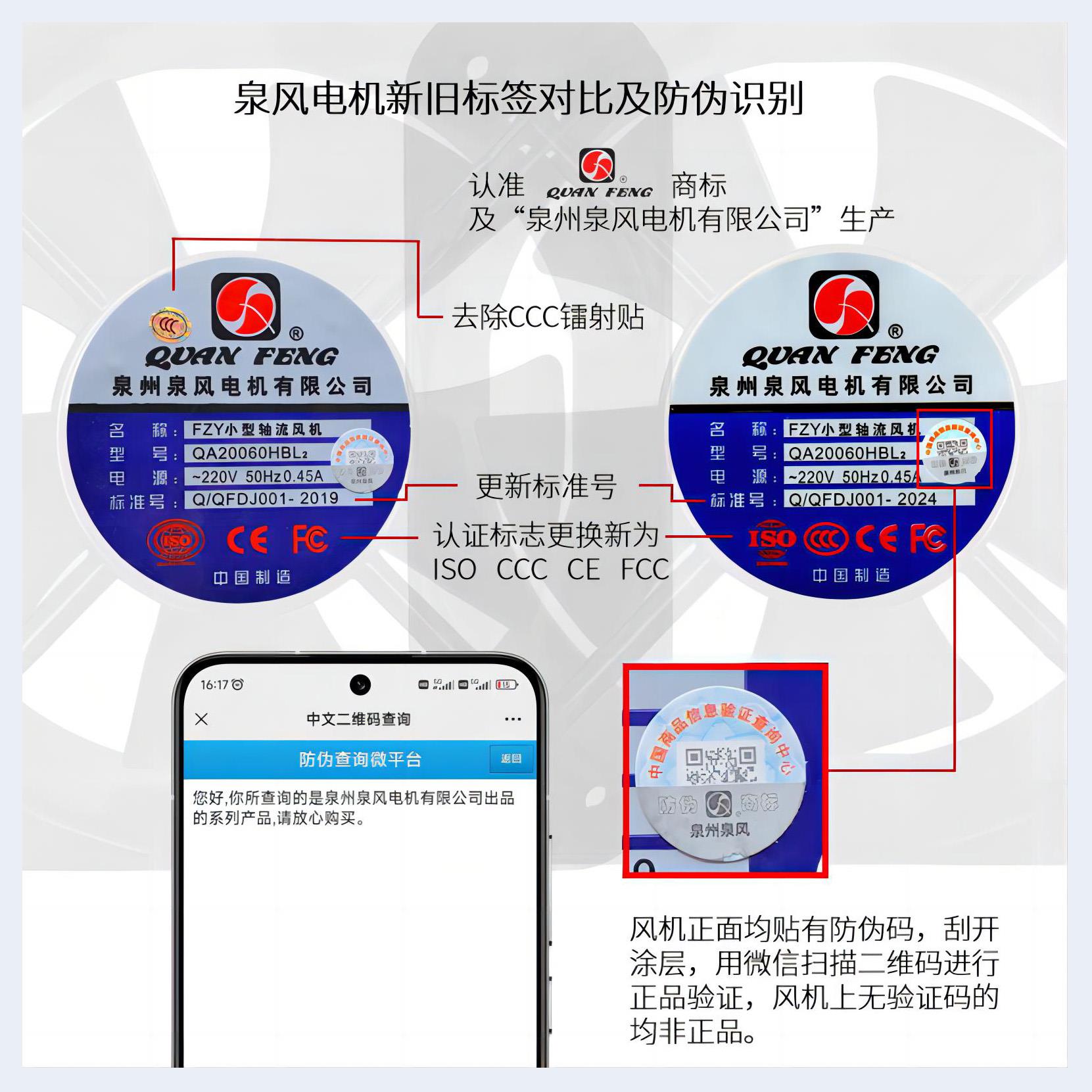 泉風(fēng)軸流風(fēng)機(jī)標(biāo)簽及標(biāo)準(zhǔn)號更新